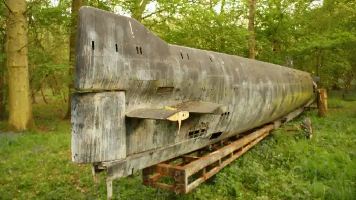 Мини-подлодка на военной базе Королевских ВВС Великобритании. База в Финмере, Оксфордшир (эксплуатировалась только в годы Второй Мировой войны)