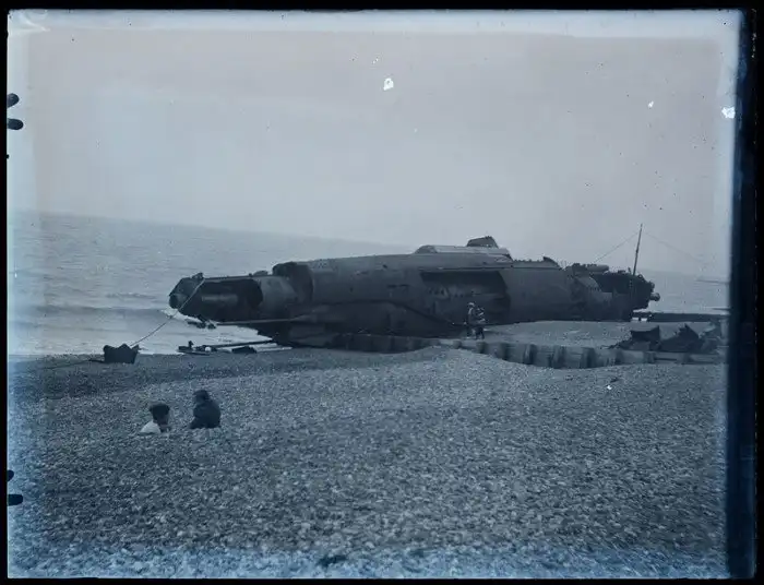 Историческое фото: другая немецкая подлодка того времени (предположительно, UB-131). Гастингс, Великобритания, 1918
