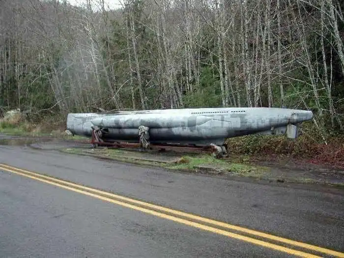 Отрезанная часть подлодки, неожиданно встреченная на шоссе одним американским автопутешественником
