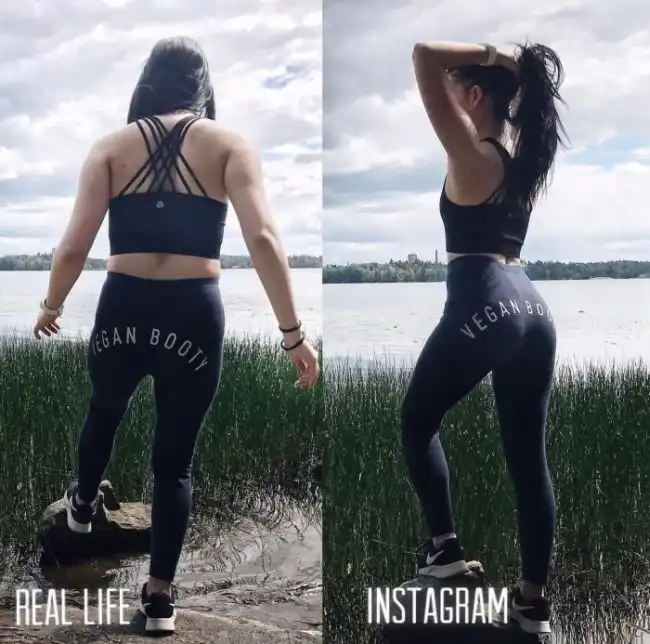 Девушка публикует снимки, которые она делает с разницей в минуту, чтобы показать, какую роль в формировании "идеального образа" играют поза и ракурс. Это действительно мощное оружие, которое продолжает дурачить головы большому количеству людей по всему миру.