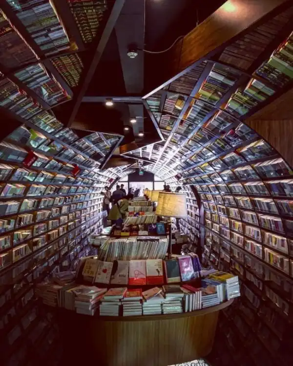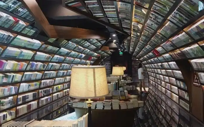 В китайском городе Янчжоу, провинция Цзянсу, книжный магазин и библиотеку с помощью зеркальной иллюзии превратили в бесконечный книжный лабиринт. Проектировкой интерьера занималась шанхайская студия XL-Muse Architects, которая выбрала в качестве источника вдохновения знаменитые каналы Янчжоу с арочными каменными мостами через них, воспетые известными китайскими поэтами. Оказавшись в помещении посетитель попадает в своего рода "книжную реку".
