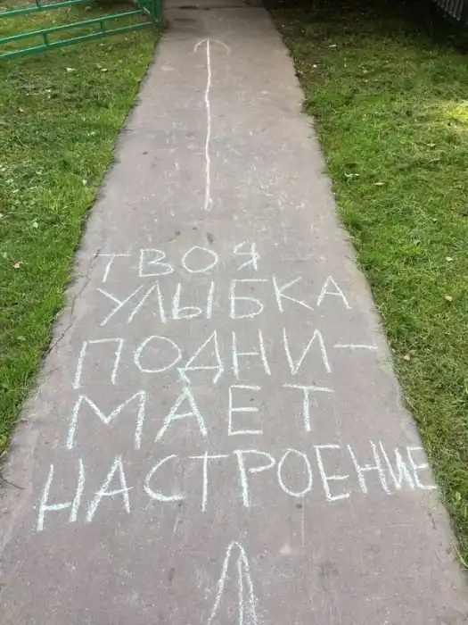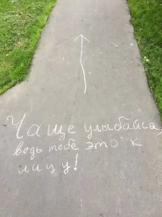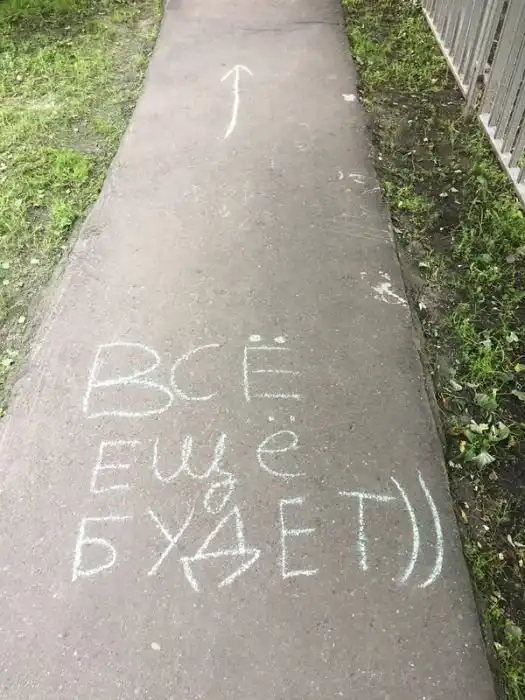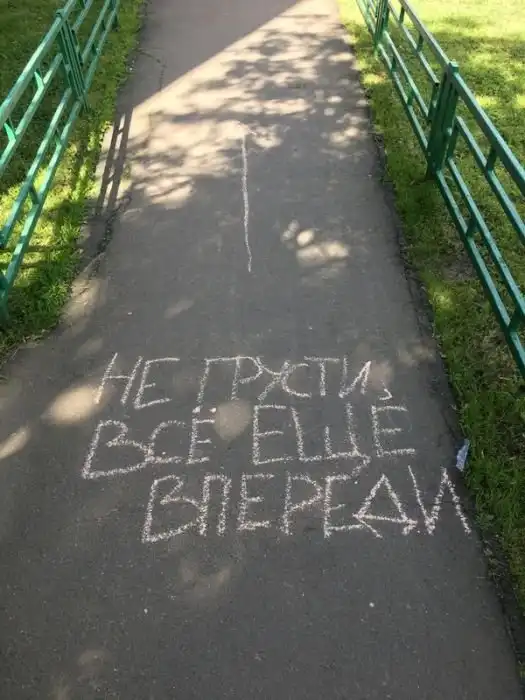 Автор этих фото решил идти по указаниям стрелок, которые вели от одной надписи на асфальте к другой и вскоре он подошел к стадиону. Воодушевляющие надписи ребят подняли настроение парню и он не сдержался, чтобы не выполнить несколько упражнений, проделав такой путь. Теперь все это вошло уже в привычку и автор снимков регулярно занимается на данном стадионе.