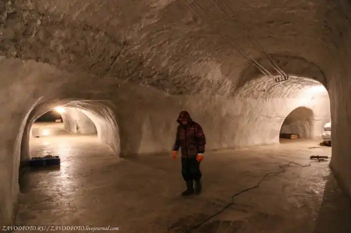 В качестве строителей были обычные рабочие завода, которые в основной массе были спецпреселенцами и ссыльно-эвакуированными. Работы велись посменно, днем и ночью, круглые сутки. Смена состояла из 15-20 человек. Работали, не жалея себя. Так для примера, план работ 1952 года был выполнен коллективом на 150% и это при том, что всё делалось вручную, лишь кирка, скребки, да лопаты были строителям в помощь. За три года в условиях вечной мерзлоты была пробита горизонтальная шахта, которую позже удлинили и расширили. Основные работы по строительству были закончены в 1956 году. В итоге, на выходе наша страна получила самое крупное в мире хранилище в многолетних мерзлых породах, сделанное при помощи ручного труда.