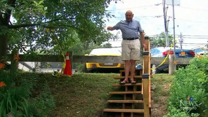 В одном из парков канадского города Торонто появилась тропинка, которой охотно пользовались местные жители, однако заканчивалась она неудобными и даже опасными ступеньками. Пешеходы здесь неоднократно падали, что приводило к ушибам и даже переломам. Местные власти оценили строительство ступеней в 65 - 150 тысяч долларов и начали искать эти средства. Пока чиновники занимались поиском денег, бывший механик Ади Астль решил эту проблему, потратив всего 550 долларов. За 14 часов пенсионер и его помощник построили деревянные тупеньки с перилами, которые очень понравились местным жителям. Власти от такого самоуправства не в восторге и хотят проверить лестницу на соответствие необходимым стандартам.