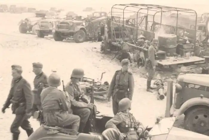 В сети опубликовали сделанные немцами фото французского города Дюнкерк, который в мае 1940 году был захвачен силами Вермахта. В городе проводилась эвакуация британских и французских военнослужащих, а также мирного населения, в ходе которой было эвакуировано более 300 000 человек. Тем не менее, нацисты захватили порядка 80 000 военнопленных, а также технику и машины, которые изображены на этих ранее публиковавшихся фото.
