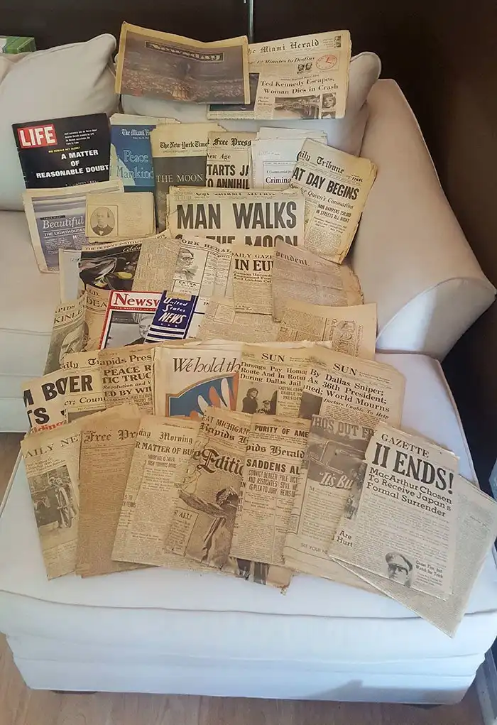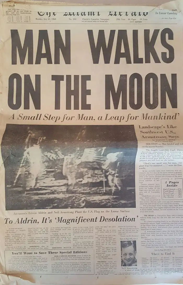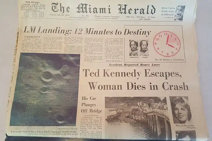 Статьи о высадке на Луну и автомобильной аварии Эдварда Кеннеди от 20 июля 1969 года