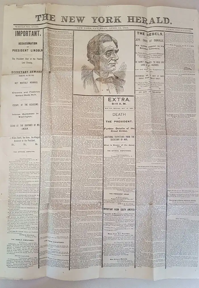 Убийство Линкольна, перепечатка этой газеты от 15 апреля 1865 года была сделана не позднее 1880-х