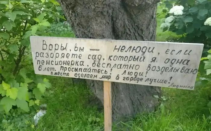 Вот такой сад находится в Москве у станции метро Бауманская во дворе одного из жилых домов. Подобную красоту сотворила простая женщина, которая хочет сделать этот мир чуточку лучше, а потому начала она со своего двора. Но судя по всему, нашлись и те, кто покушался на ее сад, а потому здесь появилась табличка вот с такой вот надписью, которая, будем надеяться, образумит людей.