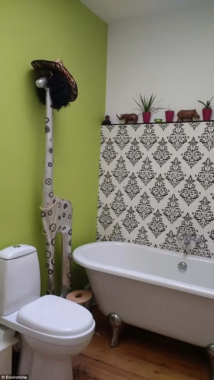 Венди Мур из Бристоля на распродаже в онлайн-магазине приобрела за 5 фунтов статуэтку жирафа. Она рассчитывала поставить ее на полочку в ванной. Но, как оказалось, фотография не в полной мере передавала размер объекта: статуя жирафа заняла почетное место у стенки, почти упираясь головой в потолок.