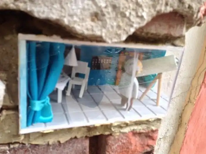 Новый арт-объект появился в Нижнем Новгороде на улице Семашко. Творение неизвестного уличного художника представляет собой небольшую коробку с прозрачными стенками, которая встроена в колонну забора вместо одного из кирпичей, обнажившихся из-за облупившейся штукатурки. Внутри коробки находится фигурка звездочета, стоящего рядом с телескопом.