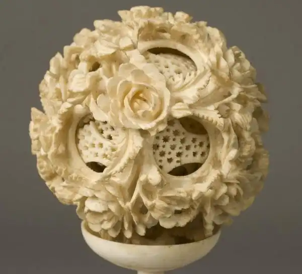 В кризисном XVII веке появилась резьба по кости «шар в шаре» (вложенные друг в друга костяные ажурные шары, состоящие из миниатюрных фигурок) – вещь, поражающая филигранностью работы, но, по сути дела, всего лишь изящная и трудоемкая безделушка. На такую работу у мастеров уходили многие годы.