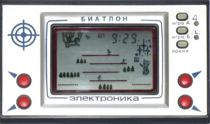 Точно такой же гаджет появился в СССР в 1984 году под кодовым названием «Электроника ИМ-02». С тем лишь отличием, что по жидкокристаллическому экрану двигался волк знакомой наружности.