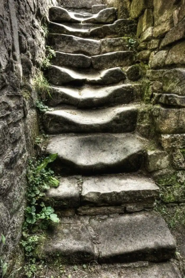 Выемки от ног посетителей перед окошками кассиров в банковском зале