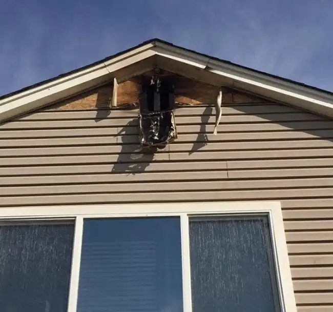 Житель США опубликовал фото своего дома, в который попала молния. Столь печальное зрелище стало последствием пожара, вспыхнувшего сразу после попадания молнии, а также его тушения. Пожарные разобрали часть крыши для тушения пламени и залили все водой. Страховая компания возместит ущерб, однако на следующий год коэффициент по страховым взносам будет увеличен.