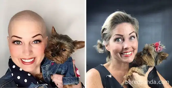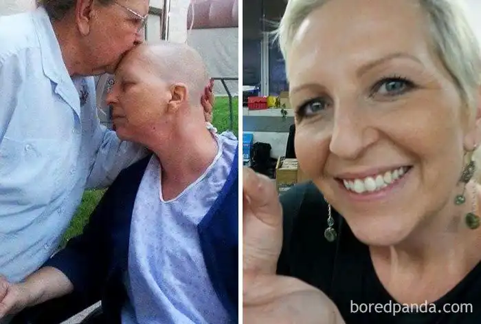 2 года разницы. Слева - во время курса химиотерапии, справа - на собственной свадьбе.