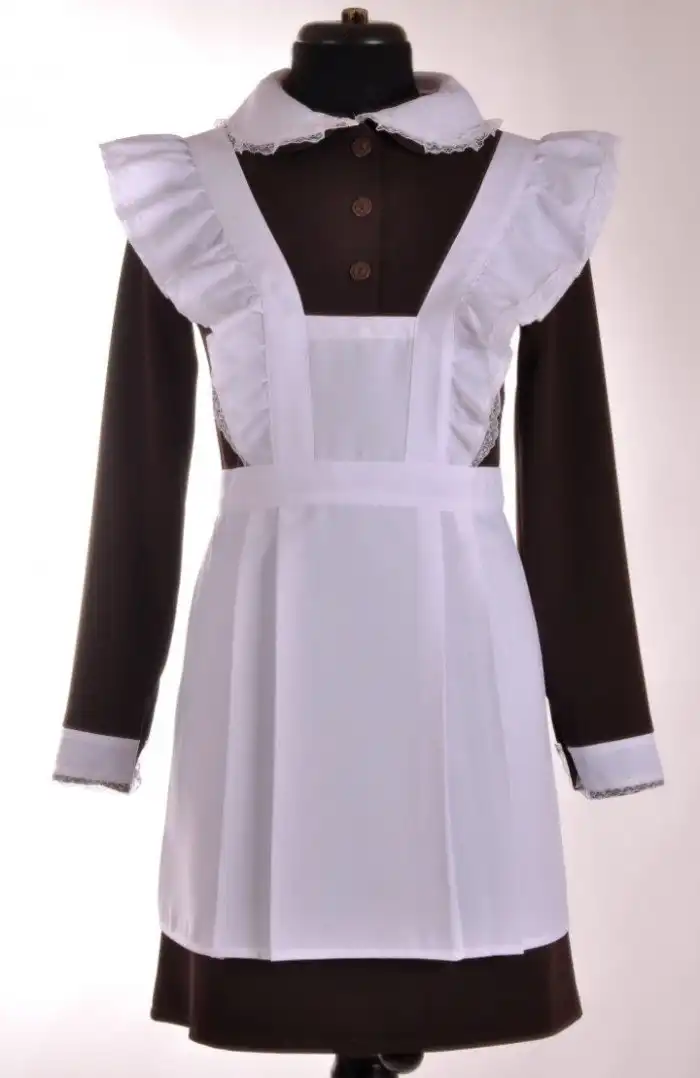 Юные барышни-гимназистки имели 3 комплекта одежды. В обычные школьные дни это было скромное платье коричневого цвета и небольшой черный фартук. Парадная форма состояла из того же форменного платья и белого нарядного фартучка. К платью пришивался кружевной воротник. В таком виде гимназистка ходила и церковь, в театр. Устав гимназии приписывал соблюдать чистоту, быть опрятной. В свободные дни девочка могла также надевать "свободное платье" любого фасона, если родители гимназистки могли позволить купить его для дочери. Цвет платьев менялся в зависимости от возраста девочки: младшие гимназистки носили форменную одежду синего цвета, 12-летние подростки до выпускных классов ходили в сине-зеленой одежде, а выпускницы - в темно-коричневых платьях.