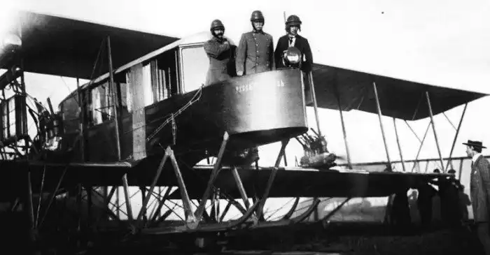 На фото на балконе аэроплана первый справа И.И.Сикорский, в центре - генерал-лейтенант Н.В.Каультбарс.