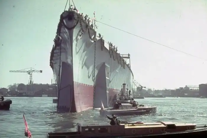 Спущенный на воду "Тирпиц" в верфи Кригсмарине в Вильгельмсхафене. 1 апреля 1939 года.