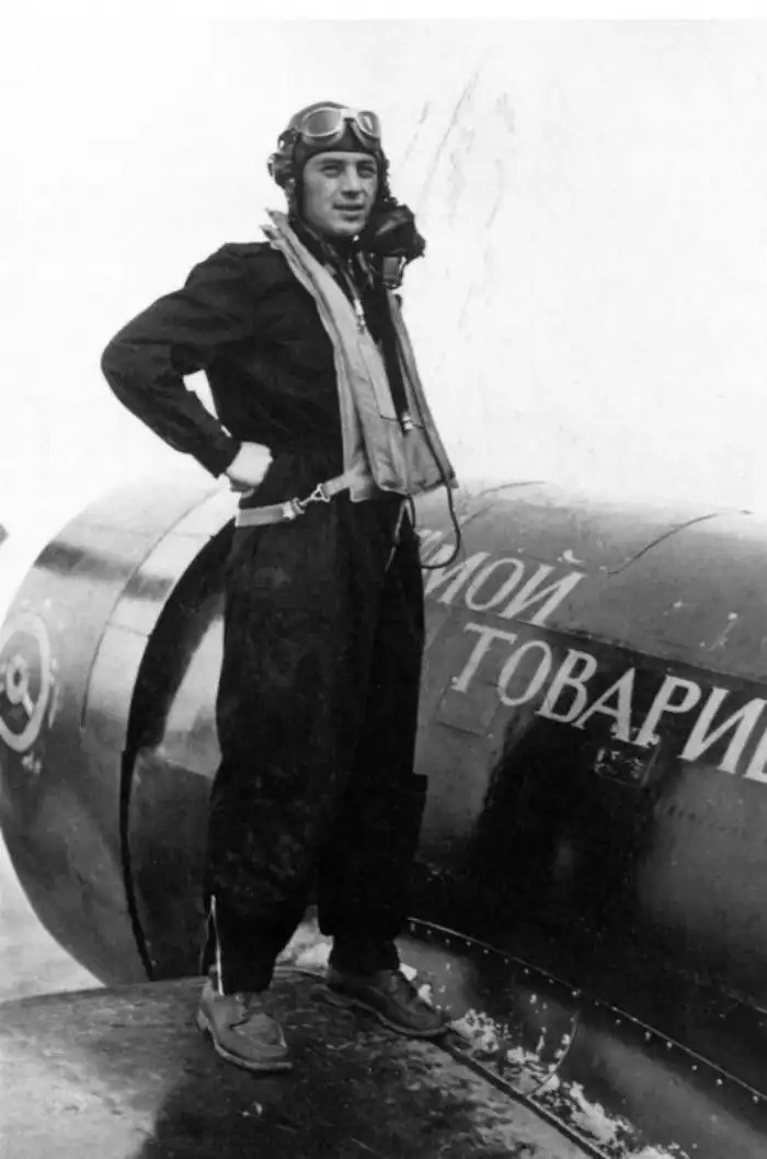 Майор Хуберт Земке, немец по национальности, командир американской 56 Fighter Group, базировавшейся в Англии, стоит на крыле своего P–47C Thunderbolt с именем собственным "Мой Товарищ". Великобритания, 1943 год.