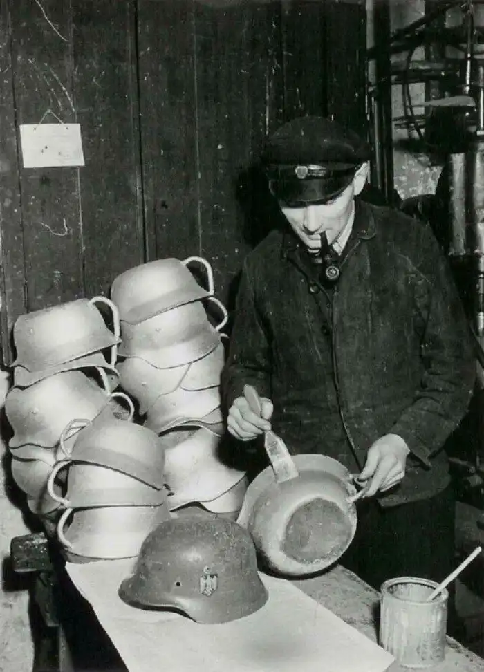 Изготовление ночных горшков из немецких касок. Дания, 1945 год.