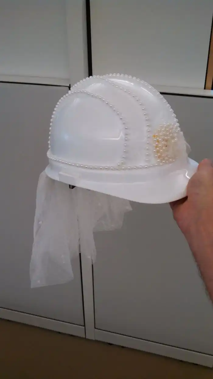 "Наш инженер выходит замуж. Решили украсить её каску"