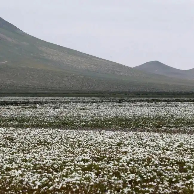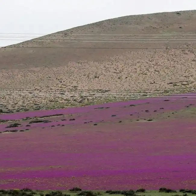 Пустыня Атакама на севере Чили покрылась тысячами цветов после прошедших здесь аномальных ливневых дождей. Это место считалось одним из самых засушливых на земле, осадки здесь выпадали крайне редко, а потому пустыня долгое время оставалась безжизненной. В этом году пустыня расцвела и здесь насчитали более 200 видов цветущей фауны, что сразу же привлекло туристов.