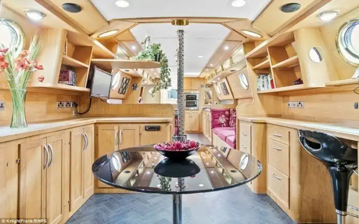 Этот плавучий дом, кажется, оснащен всеми современными приборами - и бытовой техникой, и электроникой. Вот краткий перечень: холодильник, морозильник, микроволновая печь, полноценная плита с духовым шкафом и пятью конфорками, стиральная машина, телевизор, DVD-плейер, четыре синхронизированных радио и 16 аудиоколонок.