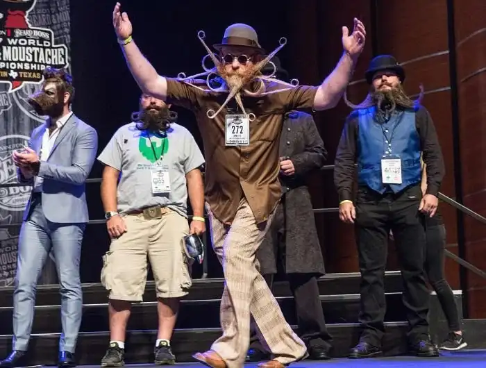 Множество людей собрались в Техасе на соревнованиях, где выбирали тех у кого самые красивые усы и борода. Образы, которые сделали участники, просто восхитительны. Один парень сделал из своей бороды маску собаки. Вы можете себе это представить? Если нет, то обязательно смотрим фото далее.