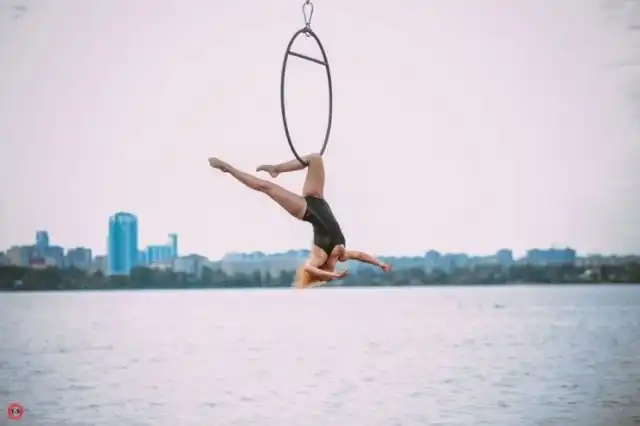 Десять гимнасток из студии танцев "Нашествие" приняли участие в эффектной фотосессии над Визовским прудом в Екатеринбурге. Арендовав манипулятор на три часа, к нему подвешивали кольцо, шест и полотна, на которых и фотографировались девушки. Больше всех, по словам девушек, волновался оператор манипулятора, поднимавший девушек с реквизитом на высоту 8 - 9 метров. Фото получились весьма впечатляющими, и далее мы предлагаем вам оценить их.