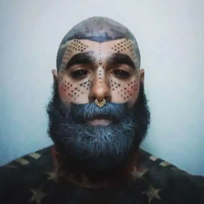 Этот парень решил выделиться из толпы и привлечь к себе внимание, а потому изменил свое лицо до неузнаваемости. Теперь он выглядит, мягко говоря, странно, однако самому ему нравится его новая внешность и он не видит в ней ничего странного.