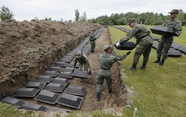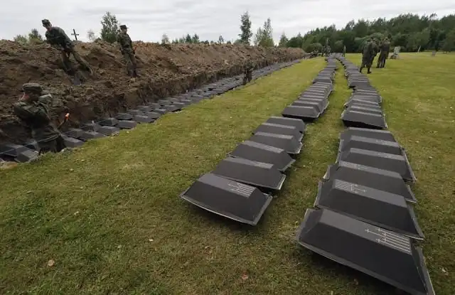 На немецком воинском кладбище "Сологубовка" под Санкт-Петербургом были перезахоронены останки 1386 солдат вермахта, погибших в годы Великой Отечественной войны. Тела были найдены на территории Ленинградской области в братских могилах. Члены поисковых отрядов установили личности погибших, после чего пригласили немецких военнослужащих для совместного проведения церемонии захоронения. Кроме того военнослужащие России и Германии проведут церемонии в память о погибших воинах и примут участие в возложении венков.