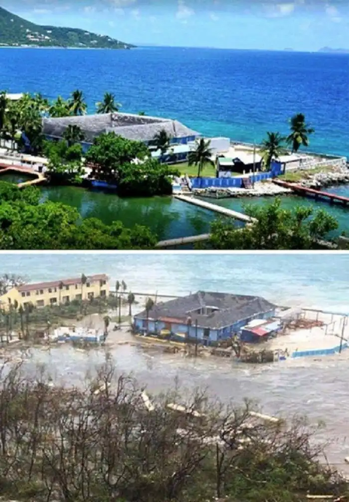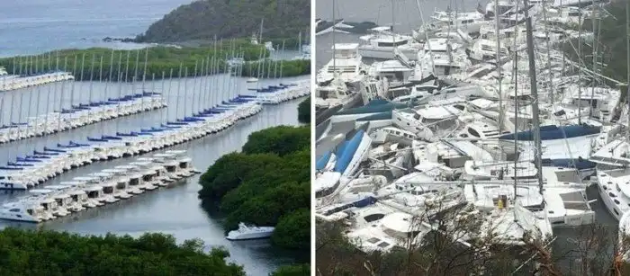 Остров Тортола, марина в заливе Паракита бэй до и после Ирмы