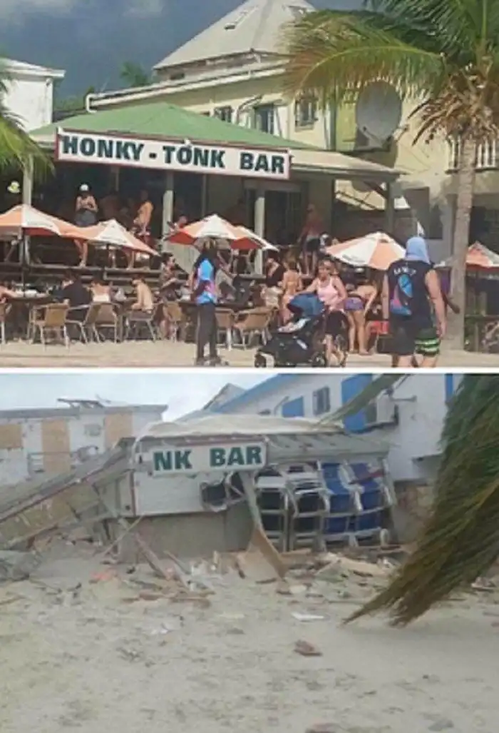 Популярный бар "Хонки-тонк" в Филипсбурге, остров Сен-Мартен, до и после урагана