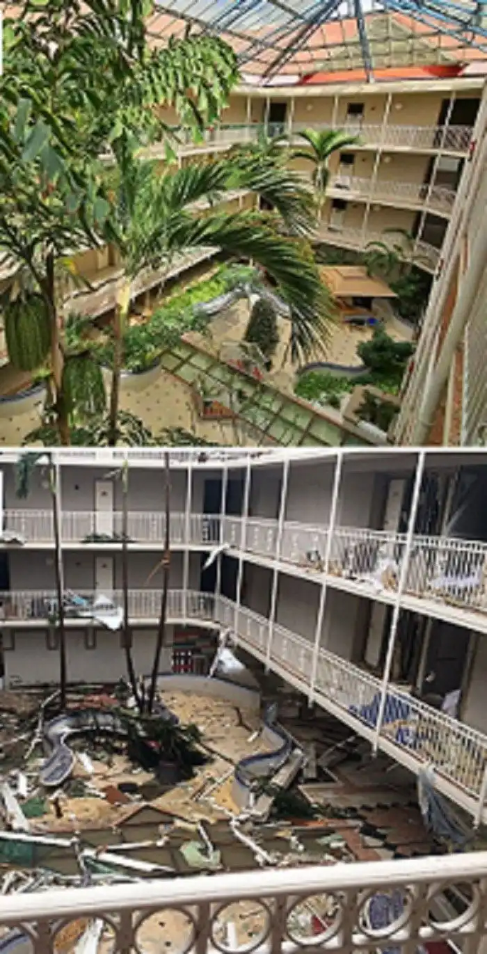 Отель "Бич Плаза" на острове Сен-Мартен до и после удара стихии
