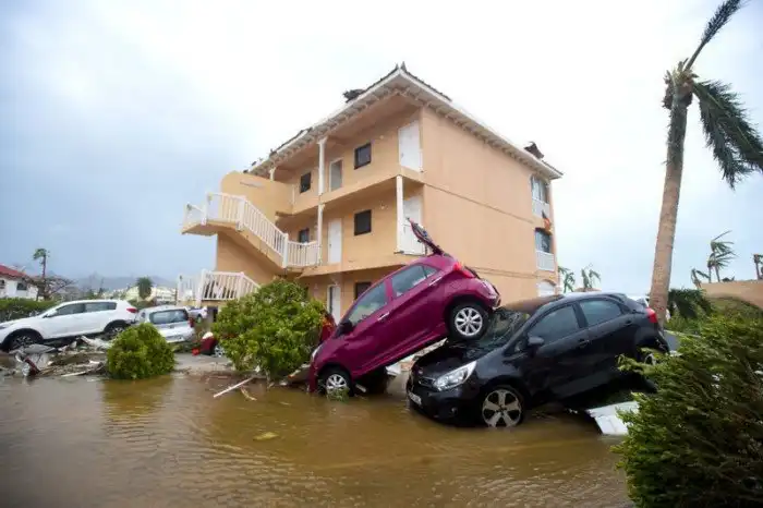 Автостоянка в Мариго, остров Сен-Мартен, после урагана Ирма