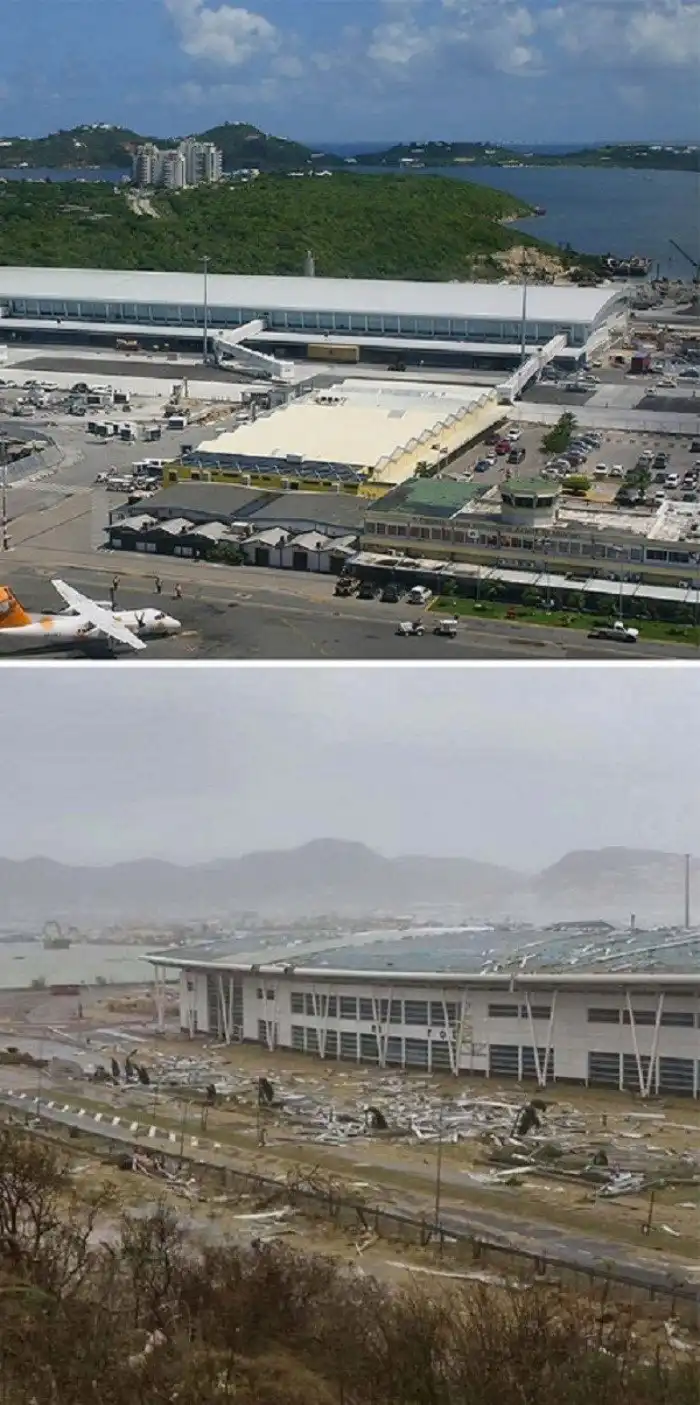 Аэропорт принцессы Джулианы на острове Сен-Мартен до и после урагана