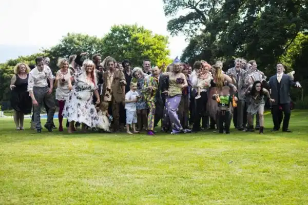 Сумасшедшая пара, Блю Бейли-Хант и Дин Пайк, сыграла свою свадьбу в духе зомби-апокалипсиса. Вместо белого кружева, цветов и свечей повсюду были кровь, черепа и расчлененка (свадебный торт). Гости, в том числе и дети, поддержали уже не молодых, придя на торжество в омерзительных костюмах и гриме.