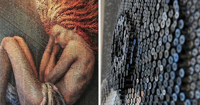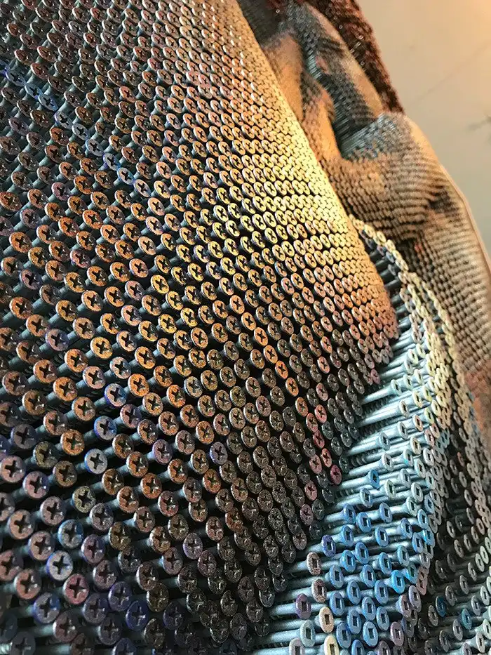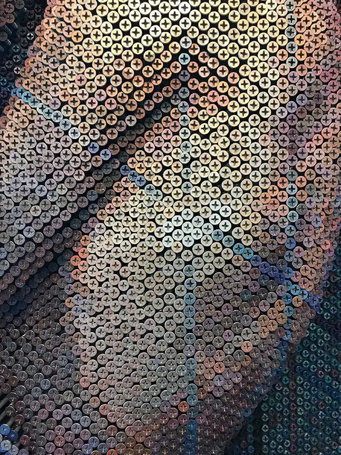 Наполовину живопись, наполовину скульптура, микс баланса и хаоса. 20 тысяч саморезов и шурупов, закрепленных на сосновой доске на разной глубине для создания 3D-эффекта. Художник Брюс Макли потратил сотни часов на создание своих произведений искусства, и результат достоин восхищения. Оцените сами!