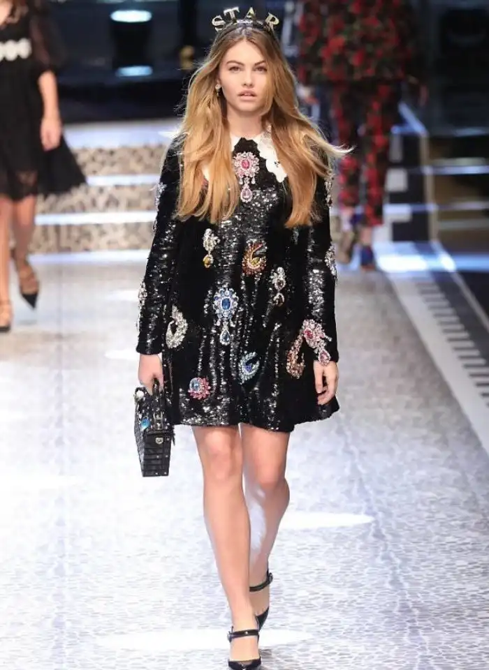 Однако прошло шесть лет, девочка выросла и превратилась в красивую девушку и востребованную модель. На фото - Тилан Блондо на показе Dolce&Gabbana в Милане в феврале 2017-го.