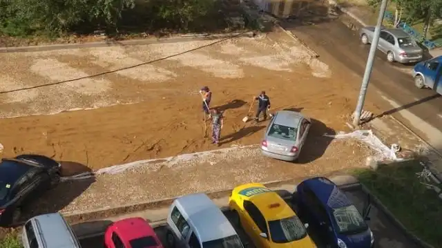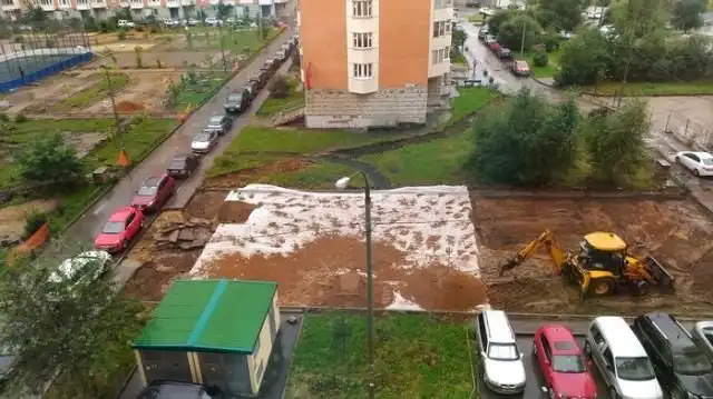 Жители одного двора пожаловались на нехватку парковочных мест, и местные власти пошли им навстречу. Несколько дней строители трудились над новой площадкой, а когда ушли на выходные, недостроенную парковку тут же оприходовали автомобилисты. Из-за этого вернувшимся рабочим пришлось разравнивать верхний слой песка.