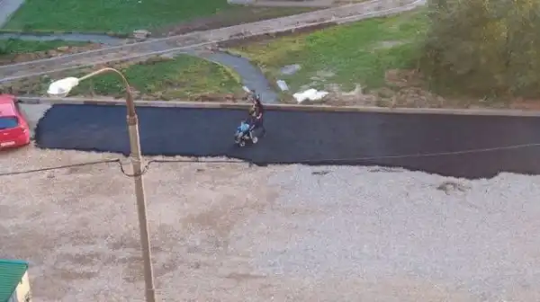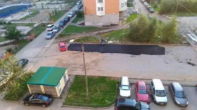 Затем строители огородили въезд лентой и заасфальтировали полосу до припаркованной машины. Вечером ситуация повторилась: жильцы опять припарковали авто на площадке, сорвав ленту. Терпение рабочих лопнуло: они выкопали траншею на въезде и только тогда смогли нормально положить асфальт.