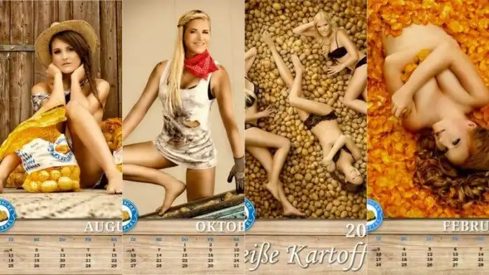 Календарь "Горячая картошка" предлагает каждый месяц любоваться симпатичными немецкими девушками на фоне картофеля.