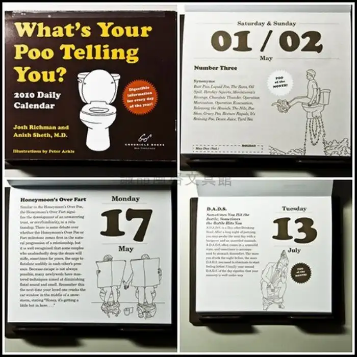 Этот перекидной календарь не только подскажет день недели и число, но и в доступной форме поможет вам определить свое состояние здоровья по, мягко говоря, работе вашего кишечника.