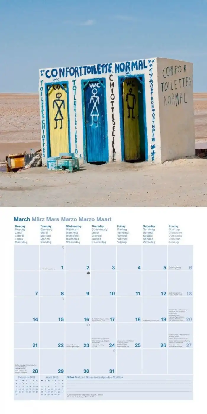 Продолжая тему, начатую собачками, календарь "Туалеты по всему миру" собрал фотографии самых уютных уличных туалетов.