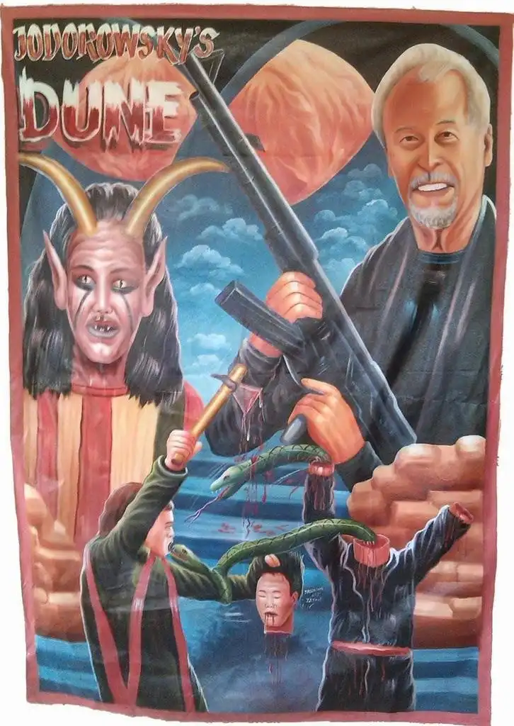 Хотя с первого взгляда и сложно понять, что же на них изображено, эти постеры на удивление занимательны. Нарисованные масляной краской на распоротых мешках из-под муки – единственного материала, доступного их создателям, – они рекламируют голливудские «ужастики» и боевики, индийское кино, снятые в Гонконге фильмы о боевых единоборствах, а иногда и довольно странные (по американским меркам) ленты из Нигерии и Ганы. Честно говоря, по моему мнению, эти афиши интересны даже больше, чем сами фильмы.
