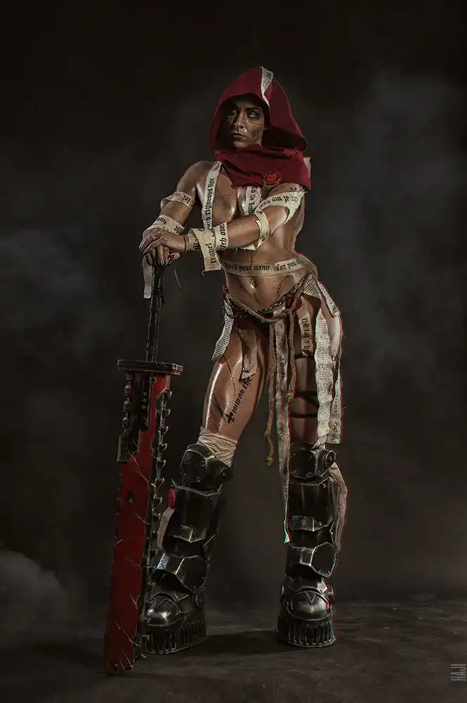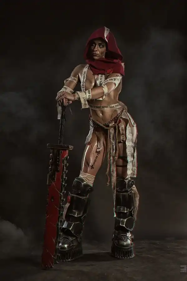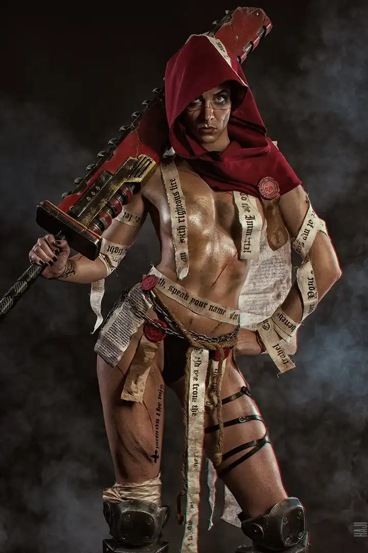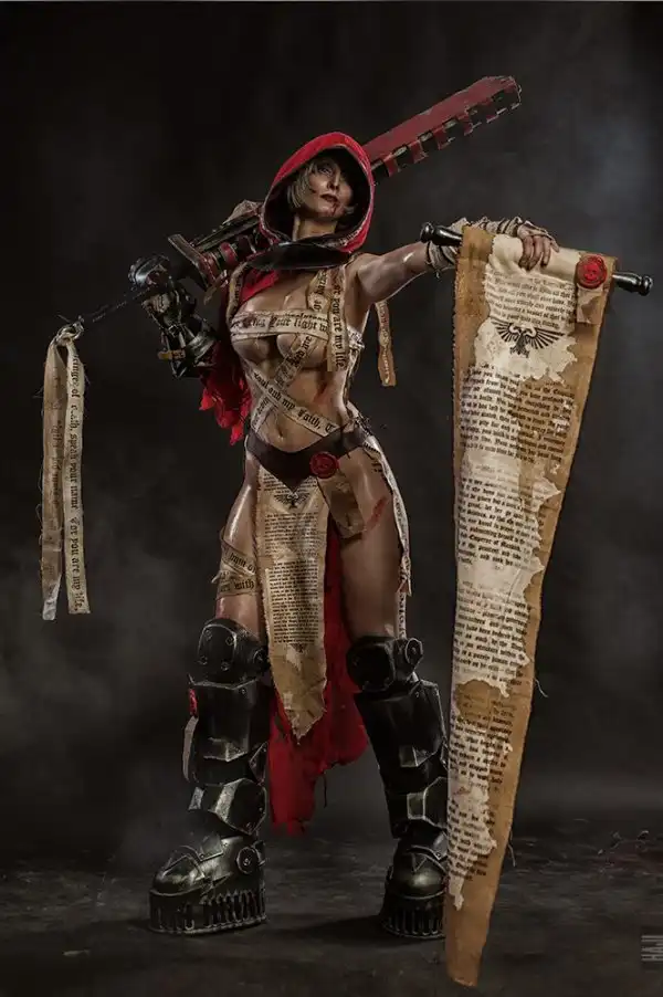 Daria Kulikova, Anastasia Sallozare и Sonia Red в виде адептов Сороритас, ставшие Сестрами-Репентиями на основе образов из вселенной Warhammer 40.000.