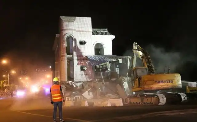 На протяжении 14 лет трехэтажный дом, стоявший посреди шоссе, был основным источником пробок и аварий в одном из районов Шанхая. Все дело в том, что его владелец наотрез отказывался его продавать, поэтому дорожникам пришлось обвести шоссе прямо вокруг него. Но теперь, спустя столько лет, владелец все-таки согласился продать его властям за 412 тысяч долларов и, конечно же, дом сразу же был снесен.