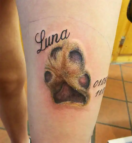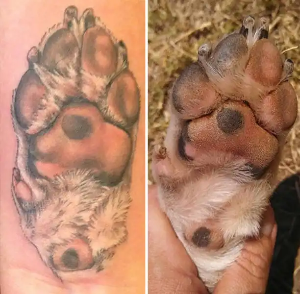 Сегодня мы покажем вам самый необычный способ того, как увековечить память о своей любимой собаке, а именно - сделать татуировку с ее лапой. Честно говоря, такие татуировки смотрятся довольно свежо и интересно.