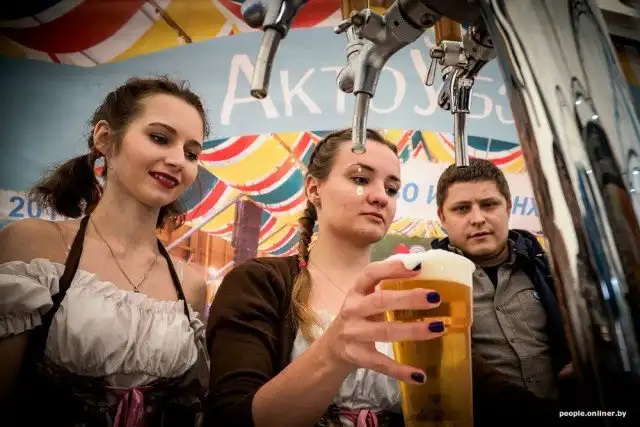 В Минской области в городе Логойск прошел фестиваль «АктоӮбэрФэст», ставший белорусским аналогом знаменитого немецкого «Октоберфеста». Льющееся рекой пиво, разнообразие закусок, масштабная развлекательная программа и, конечно же, девушки в платьях с декольте придали данному мероприятию характерный колорит. Далее предлагаем взглянуть на то, как развлекались посетители «АктоӮбэрФэста», где можно было отведать более 30 сортов пива местных производителей.