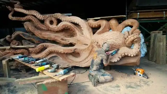 Американец Джеффри Самудоски (Jeffrey Samudosky) вот уже на протяжении 20 лет занимается резьбой по дереву, превращая цельные стволы деревьев в настоящие произведения искусств. Основным инструментом Джеффри является бензопила, которой он орудует так словно это очень точный инструмент. Работы Джеффри всегда поражают своей детализацией и заслуживают высоких наград на конкурсах. Только взгляните на то, как ему удалось превратить обычный ствол и огромного осьминога.